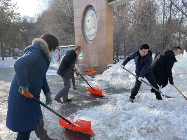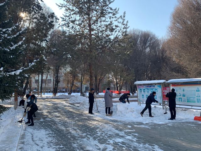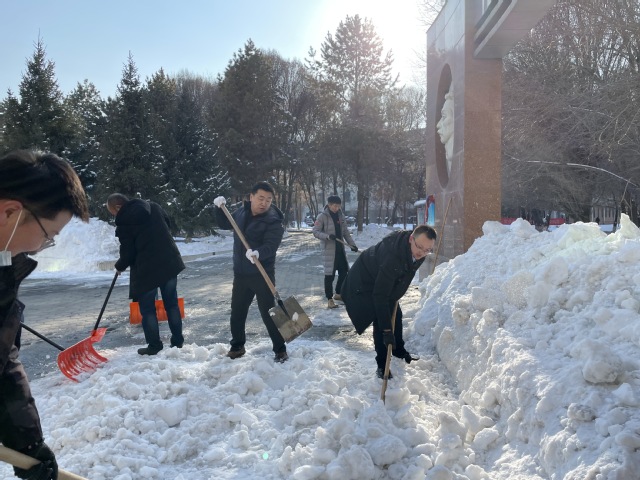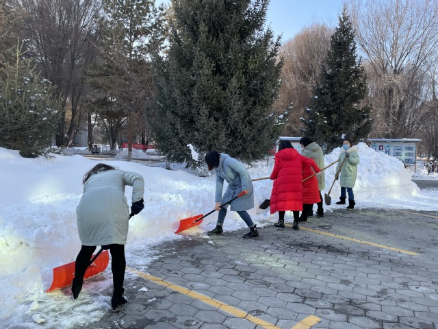 新学期伊始,员工陆续开学,为尽快扫雪除冰、畅通道路、消除隐患,确保师生在校的安全和公司产品的正常进行,3月2日下午在院领导的带领下,机关全体老师积极投入到积雪清扫队伍中,尽管室外清冷,但是老师们互相协作、齐心协力,铲的铲,推的推,扫的扫,老师们还在铲雪过程中总结出扫雪的最佳方法,相互交流、其乐融融,给寒冷的冬天带来了融融暖意。路过的员工也纷纷上前助力。