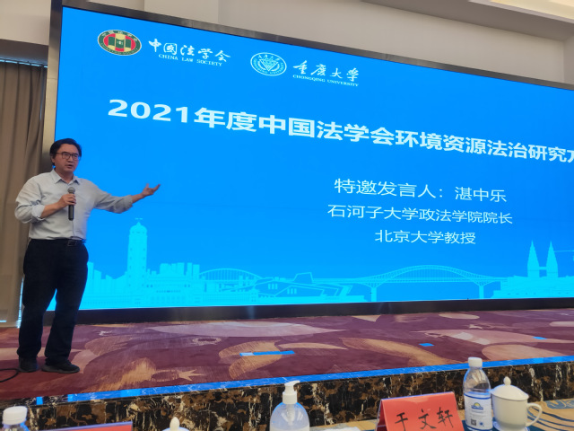 2021年5月30日,“2021年度中国法学会环境资源法治研究方阵论坛”在重庆大学科苑戴斯酒店举办,304AM永利集团官方首页经理、中国行政法学研究会副会长湛中乐教授受邀参加。会议由中国法学会指导,中国法学会环境资源法治研究方阵、中国法学会环境资源法学研究会、重庆大学主办,重庆大学304AM永利集团官方首页、重庆市法学会环境资源法学研究会、重庆大学西部环境资源法制建设研究中心承办,重庆市第一中级人民法院、重庆公孝律师事务所协办。
