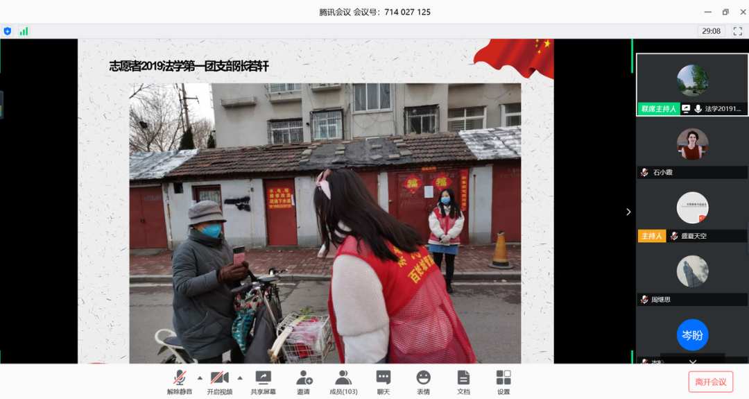 青春由磨砺而出彩,人生因而奋斗而升华。在这场疫情防控人民战争、总体战、阻击战,广大青年积极响应党的号召,不畏艰险、冲锋在前、舍生忘死,彰显了青春的蓬勃力量。在各支部内的党员、志愿者、团干部讲述战疫故事、分享战疫感受、表达所见所闻事迹会上,“抗击新冠肺炎疫情是一场长久的人民战争。疫情以来,全国各地方、各部门、各领域的人民都积极响应动员起来,纷纷以不同方式投入这场战斗。而曾经被保护着长大的我们,在国家和社会需要的时候,更应该主动接过责任担当的接力棒,扛起时代赋予我们的使命,在这个无硝烟的战场上,用青春书写我们自己的故事。”来自旅游管理20181、2班团支部的朱海龙说。一代人有一代人的长征,一代人有一代人的担当。新时代新一代新期待,更应坚定理想信念站稳人民立场、练就过硬本领投身强国伟业。